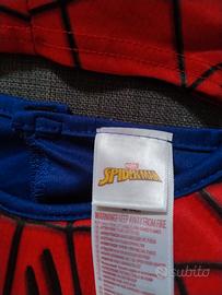 Vestito di Carnevale di Spiderman. Con gommapiuma sul davanti e sulle spalle per simulare muscoli. Apertura in velcro sulla parte posteriore. Taglia 3-4 anni, 98-104 cm. Completo di maschera in stoffa per il viso.