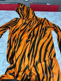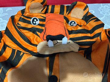 Vestito Carnevale Tigrotto, nuovo tuta intera felpata con cappuccio da tigre, chiusura con bottoni anteriore.