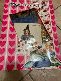 Vestito Carnevale vintage “Maga Zelda “ con cerchio x allargare abito,bacchetta magica a forma di stella ,vestito lavato.
