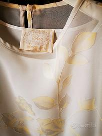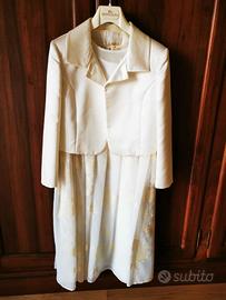 vestito comunione bimba 11/12 anni in chiffon color avorio con decorazioni in giallo chiaro e bolerino avorio semilucido