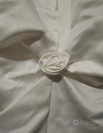 Vestito comunione per bambina con bretellina doppia e manichina scesa con perline, corpetto decorato a mano con perline e paillettes, cinta a nastro annodabile sul retro con nodo semplice o fiocco, gonna con fiori cuciti effetto arricciato, cerchio sottogonna incorporata per effetto gonfio e delicato tulle arricciato che spunta sotto. Ottime condizioni, spedisco corredato della sua stampella e accessori per capelli. Regalo anche scatoline bomboniere per compagni di classe avanzate, prevalentemente maschietto, alcune anche con oggettino e regalo anche fascia capelli con brillantini (usata) e mollette (nuove) ed elastichetti (nuovi) per acconciatura
