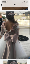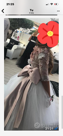 Vestito sartoriale modello pappacena.Il vestito è ricamato a mano , tulle in seta e pizzo francese.Compisto da un gonnellone con fiocco cipria e una tutina a pantaloncino.