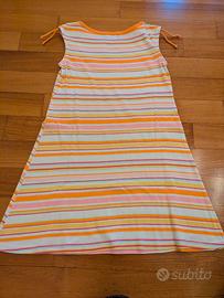 Vestito, copricostume Benetton bambina, a righe arancioni, 100% cotone, senza maniche e con laccetti sopra alle spalle. Taglia 8 anni. Usato ma in buone condizioni.