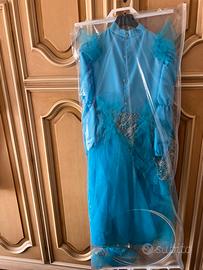 Vestito da fata turchina per bambina Con cappellino Misure: Dalla spalla 108 cm Dal colletto 104 cm Manica 50 cm Collo 15 cm
