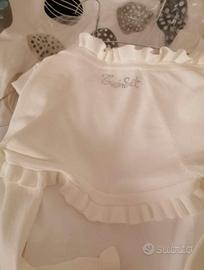 Vestito da cerimonia da bambina usato solo 1 volta, lavato in lavanderia. Vestito e cinturino marca Monnalisa, in cotone, con sottogonna in tulle. Coprispalla twinset, tutto delicato, pregiato, bellissimo!!!