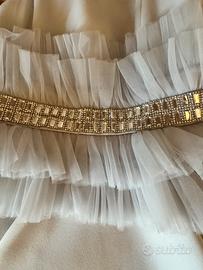 Un bel vestito da cerimonia , che può fare felice una bambina. Colore grigio , con gli strass. Eta 9-12 anni. Comprato in uno show-room. Di buona qualità.
