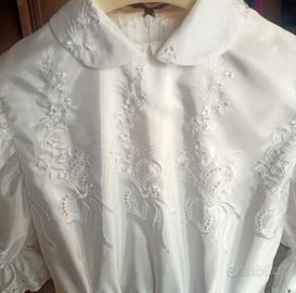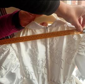 Vestito da comunione bambina (10-11 anni), cucito su misura, indossato una sola volta. Ottime condizioni. Misure indicate nelle foto (lunghezza dalle spalle in giù 113 cm circa)