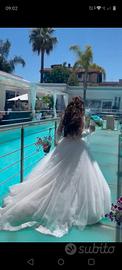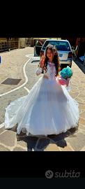 Vestito da comunione principesco come una vera principessa indossato solo per foto con modifica: si toglie il gonnellone dietro tutto lavorato in pizzo da come si può costatare dalle foto non esitate a contattarmi per qualsiasi cosa