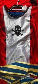 Vestito da pirata ben fatto tessuti buoni anni 9/12 ma calza molto. Dotato di banda occhio copricapo giacca fasciata pantaloni. Ritiro solo a Mano in Marino.