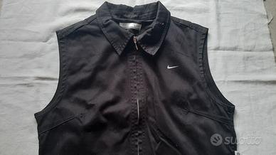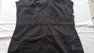Indossato solo qualche volta ed ancora in ottime condizioni. Vestito scamiciato e smanicato da ragazza di colore nero. L'abito presenta una chiusura frontale con cerniera a tutta lunghezza ed un colletto classico. Sul petto a sinistra è presente il logo Nike in bianco. Grandi tasche applicate con patta sui fianchi e dettagli in stilo cargo. Stampe bianche posizionate verso l'orlo inferiore che elencano varie tipologie Nike. Una cucitura in vita definisce la silhouette. Tessuto 94% cotone 6% elastane. Taglia 14 anni. Marca Nike