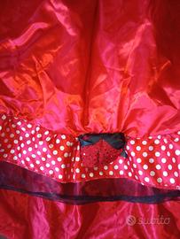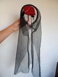 Causa cambio taglia vendo bellissimo vestito da spagnola rosso e nero, realizzato per bambine di 5/7 anni. È composto dal velo nero con rosa rossa, vestito decorato con balza e fascia a V sul torace, rosa applicata sulla balza; all'interno è cucita la sottogonna con cerchio, che mantiene largo l'orlo.