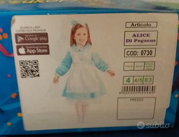 VENDO VESTITO DI CARNEVALE ALICE NEL PAESE DELLE MERAVIGLIE, MARCA PEGASUS. ETÀ 4/5 ANNI. USATO UNA VOLTA SOLA.