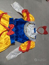 Salve vendo questo bellissimo vestito di carnevale di Biancaneve e i 7 nani in buone condizioni, il vestito è taglia 5/6 anni pagaso, ho apportato delle modifiche perché aveva delle cose cucite sulla gonna che si sono scucite , anche la cucitura sotto la gonna come si vede dalle foto è un po' rovinata. Compreso di mantello e frontino con fiocco rosso