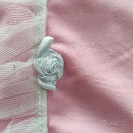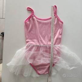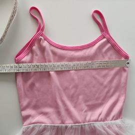 Vestito di carnevale da ballerina per bambina composto da un body rosa e la gonna di tulle bianca. Va bene per bambine di 6 anni, ma dipende molto dalla costituzione della bambina, cosi ho messo le misure.