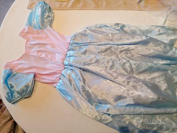 Vendo veatito di carnevale di cenerentola taglia S, 4-6 anni, con un cerchietto con il viso di Cenerentola e un altro cerchietto con pietre luccicanti in plastica e velo in tulle.