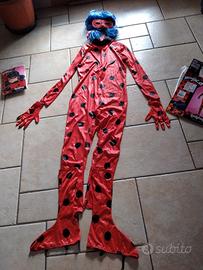 vestito di carnevale Ladybug con accessori. guanti ..copriscarpe ..maschera ..parucca blu .vestito con cerniera dietro. taglia dalla XS .. S...M