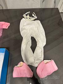 •Accessori inclusi: Coroncina bianca, fuson in ciniglia bianca e scarpette con elastico in maglina rosa.