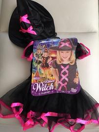 Bellissimo vestito di carnevale per femminuccia modello streghetta con nastri,dotato di abito con gonnellino e nastri color viola.