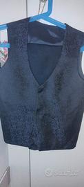 abito usato una sola volta, calza fit, 7 anni, molto elegante composto da pantalone, camicia, gilet,cravatta, giacca di colore blu. Molto elegante e raffinato. Adatto per una cerimonia importante. Artigianale Baggi. Il tessuto è fresco ed è adatto quindi per cerimonie estive/invernali. Disponibile prova su roma. Vedere on line per capire di che livello