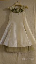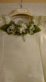 Vestito usato solo una volta in occasione matrimonio. Adatto per una cerimonia o cena Elegante. Colore verde acqua chiarissimo, i fiori si possono staccare senza rovinare l'abito. Tg 3/4 anni. Marca LES Enfants chic