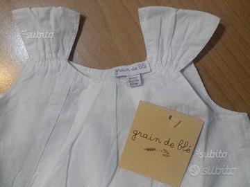 Vendo vestito Grain de Blé nuovo come da foto. Taglia 6 mesi. Vestitino colore bianco con spalline e gonna ampia con inserto ricamato sul fondo, tutto foderato e tutto in puro cotone. Molto fresco per l'estate. Completo di etichette e perfetto anche come idea regalo.