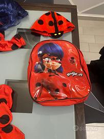 Vestito ladybug con parrucca guanti e copri scarpe , in più zainetto ladybug e cappellino età 4/5 anni