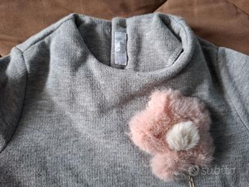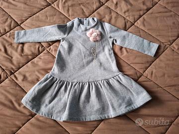 Vestito manica lunga Il Gufo per neonata con fiore applicato sul davanti e apertura con bottoni sul retro. Tessuto 100% cotone. Colore grigio. Taglia 80 cm (18 mesi).