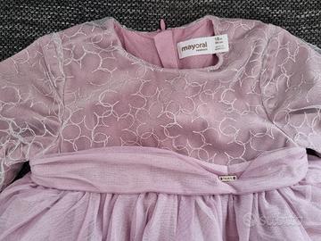 Vendo vestito elegante, per ceremonia Mayoral, taglia 18 mesi (86 cm). Vestito in tulle con maniche lunghe, ricamato, chiusura dietro con cerniera, in perfette condizioni, indossato solo 1 volta, comprata con 50 euro. Nr. telefono 3884230441.