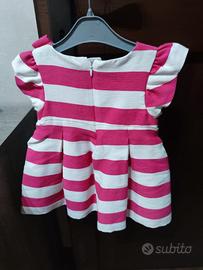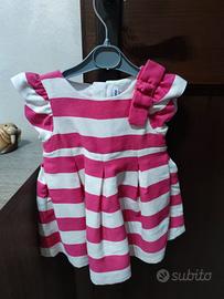Vestito neonata Mayoral usato per una cerimonia Bianco e fucsia 9 mesi 74 cm Ottime condizioni