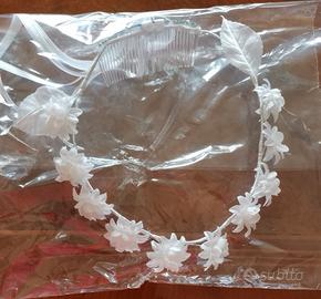 Vestito o Tunica per la prima comunione di tessuto di ottima qualità NUOVO e coroncina capelli. Se interessati invio altre foto.