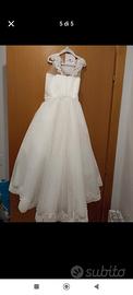 vestito per 1 comunione bianco intero con piccola coda dietro con merletto ke richiama il corpetto sopra e tutto brillantinato Ke da quel Ke pizzico di luccichio comprato in Atelier una sola volta indossato