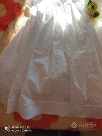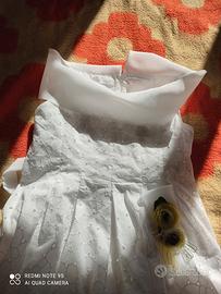 il vestito la taglia è 42 , mentre il coprispalle taglia 40, il vestito tessuto cotone, poliestere,ha fodera e velo cerniera da dietro e nastro per fare il fiocco, mentre il coprispalle elastan.