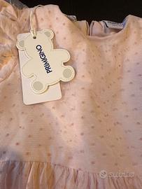 Vendo vestito elegante colore cipria della marca "Primigino" 12 mesi. Nel vestito è inclusa la mutandina coordinata. Il vestito è nuovo, non è mai stato indossato ed è completo di etichetta originale.