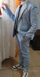 Vendo vestito per ragazzo in celeste completo di giacca, cravatta, camicia e pantalone. Marca shakò indossato solo una volta per la cresima. Visionabile. Veste 14 anni.