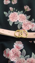 vestito smanicato nero con rose e cinturina, usato una sola volta per cerimonia