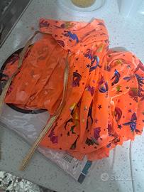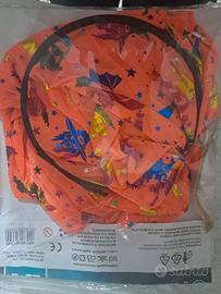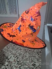 Completo formato da mantello e cappello, adatto dai 5 ai 12 anni. Con disegni streghetta zucca e pipistrelli. Lunghezza mantello 80 cm. Nuovo, mai usato, in confezione originale.
