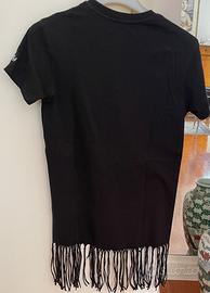 Vestito/T-shirt MC2 Saint Barth x Disney - Topolino - Taglia 10 Bellissimo ed esclusivo vestito corto (modello t-shirt lunga) firmato MC2 Saint Barth in collaborazione speciale con Disney. Il capo è di colore nero con l'iconica stampa frontale di Topolino che fa l'occhiolino in bianco a contrasto. • Dettaglio unico: Fondo rifinito con originali frange che donano movimento e uno stile boho-chic. • Dettagli brand: Logo "Saint Barth" ricamato sulla manica e stampa interna al collo "The place to be". • Qualità: 100% Cotone di alta qualità, morbido e fresco. • Condizioni: Ottime condizioni, tessuto ben tenuto e stampa integra. • Taglia: 10 anni (Girl).