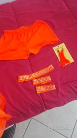 Vendo vestito usato per saggio di danza da bambina. Completo di accessori (fasce per polsi, fascia per collo, orecchini e culotte). Adatto a bambine dagli 8 agli 11 anni.