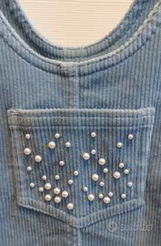 Vestito velluto azzurro 5-6 anni. Tasca sul davanti con perline di varie misure. Bottoni sulle spalle per poterlo allungare. 2 tasche laterali. Marca: Original Marines
