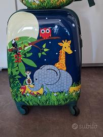 Set Trolley & Zaino Bambino Tema animali:Valigia rigida 4 ruote + zainetto coordinato - usato solo 2 viaggi. in ottime condizioni. prezzo trattabile.