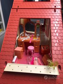 Villa di Barbie anni 80 vintage : Dream House completa di mobili ed accessori : cucina , stanza da letto , divano , stanza da pranzo ed altro . Discreto stato di conservazione : alcune porte dei mobili incollate e parti del tetto , misure 110cm per 90 con profondita di 45 , ritiro e pagamento solo in sede