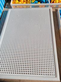 Vintage anni80 rarissimo Quercetti Fantacolor Mosaico Peg Set Made in Italy tenuto in modo ottimo con scatola Originale a chiusura con manico valigetta portabile a mano. Griglia bianca di base e i due contenitori con chiusure funzionanti con i chiodini colorati di varie dimensioni. Come nuovo!