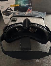 Heromask languages funziona come un visore di realtà virtuale per smartphone che rende l'apprendimento interattivo per i bambini. Basta scaricare l'app educativa, inserire lo smartphone nel visore, e attraverso giochi immersivi che usano il giroscopio e un pulsante di azione, i bambini imparano lingue e matematica in modo divertente, sparando virtualmente alle risposte corrette o interagendo con elementi virtuali