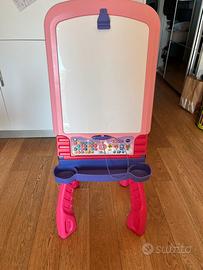 Il Magi Cavalletto interattivo 3 in 1 rosa ha un luminoso schermo interattivo per imparare a tracciare lettere, numeri da 1 a 20, 40 oggetti e 12 forme… Il bambino impara a tracciare le lettere seguendo le luci che si accendono una a una sullo schermo! Grazie alla penna magica inclusa, il bambino realizza disegni passo-passo! Una volta completati, i disegni prendono vita e il bambino scopre un'animazione! Il bambino può anche disegnare su tutta la superficie bianca con pennarelli cancellabili. Il Magi Cavalletto interattivo 3 in 1 rosa ha anche una lavagna per disegnare con gesso.