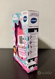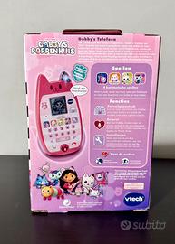 PRODOTTO NUOVO, sigillato e mai usato - perfetto per bimbi fan di Gabby’s Dollhouse su Netflix! Questa è la versione TEDESCA ufficiale VTech “Gabby’s Telefoon” (o “Lern-Handy” in DE), forma di gattino rosa glitterato con orecchio luminoso, identico al telefono di Gabby nella serie. Include batterie demo incluse (3x AAA), schermo LCD, 10 tasti numeri + 4 personaggi, giochi interattivi per role-play con Gabby e gatti (Pandy Paws, DJ Catnip, Cakey, MerCat)