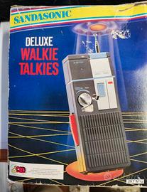 Walkie Talkies Deluxe Morse Sandasonic Mod.8383 con Antenna Telescopica.Bellissima coppia walkie talkies della Sandasonic in plastica colori Antracite e Azzurro Bianco, utilizza 2 batterie da 9 V incluse, complete di antenna telescopica con 6 transistor quindi parecchio potenti, possibile inserimento in vita grazie ad una linguetta sul retro, completo di scatola originale in discrete condizioni vista l'età e con confezione in polistirolo ancora completa. Testato si accendono e permettono il morse non posso garantire al 100% il perfetto funzionamento a causa del lungo tempo trascorso.Prego vedere tutte le foto riceverete esattamente esattamente quello che vedete in fotografia.