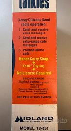 Walkie talkies Midland modello 13-041 degli anni 70, perfettamente consevsto con la dua scatola originake, entrambe testate funzionanti, vintage da collezione o utilizzo per gioco.