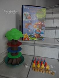 Contenuto: 1 tronco d'albero, 1 piatto basculante, 1 chioma d'albero, 6 semicerchi colorati, 1 dado colorato, 24 pedine (4 Winnie the Pooh, 4 Tigro, 4 Pimpi, 4 Ih-Oh, 8 vasi di miele).
