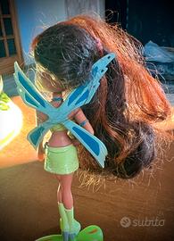 Winx Musa Kinder Maxi sorpresa, bambola in plastica rigida, vita snodata, condizioni come da foto (ali con un taglietto a destra e colore mancante a sinistra). Altezza 21 cm