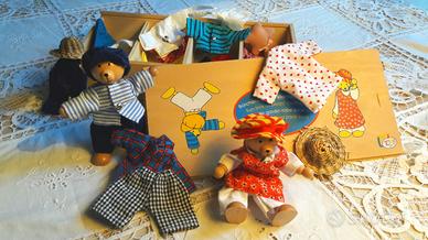 Vendesi orsetti di legno con vestiti, in condizioni perfette.